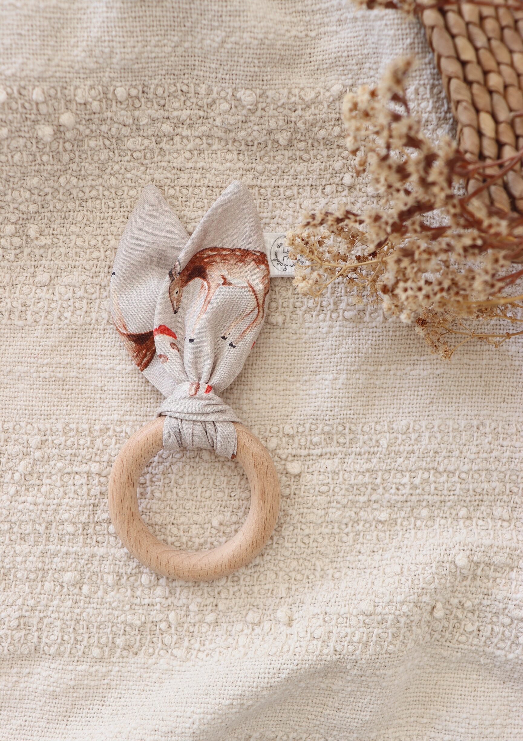 Anneau oreilles de lapin à mordiller en bois naturel  de hêtre non traité.