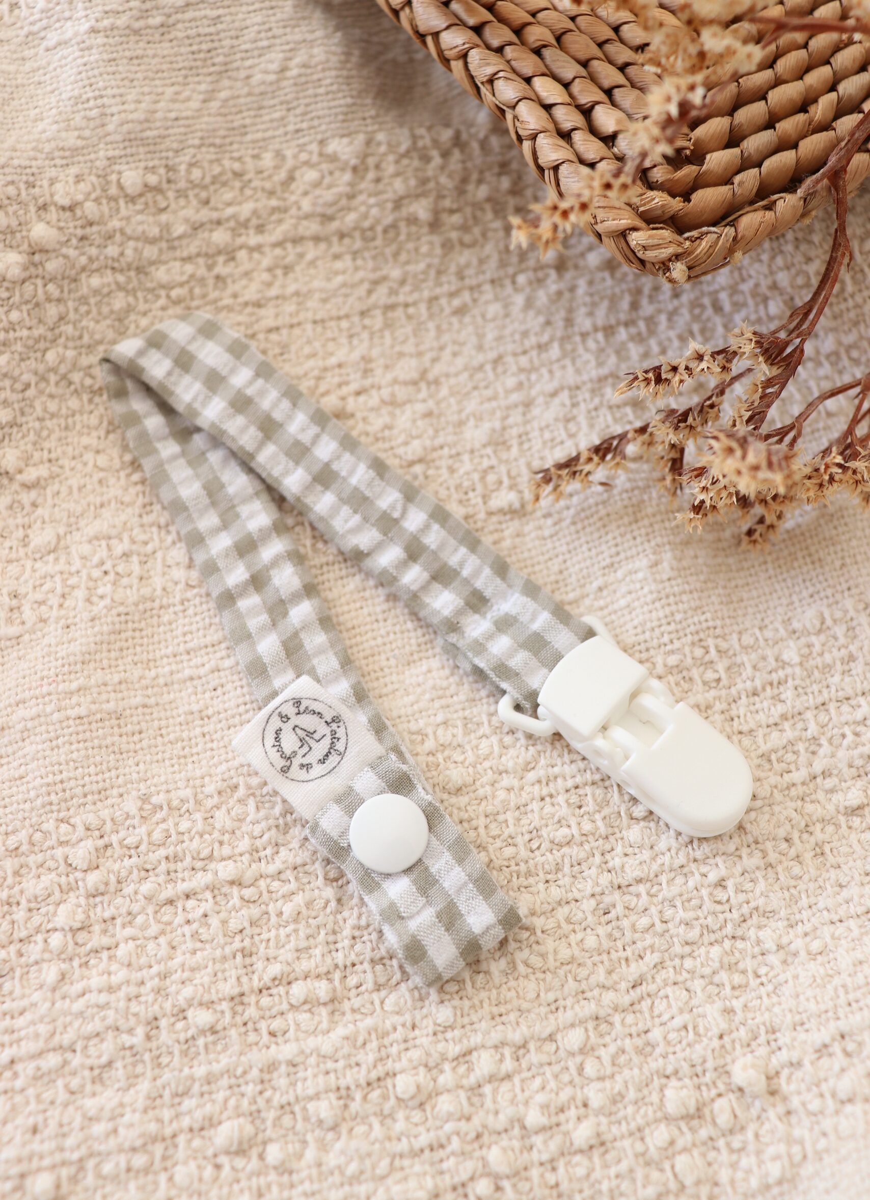 Attache tétine vichy kaki
