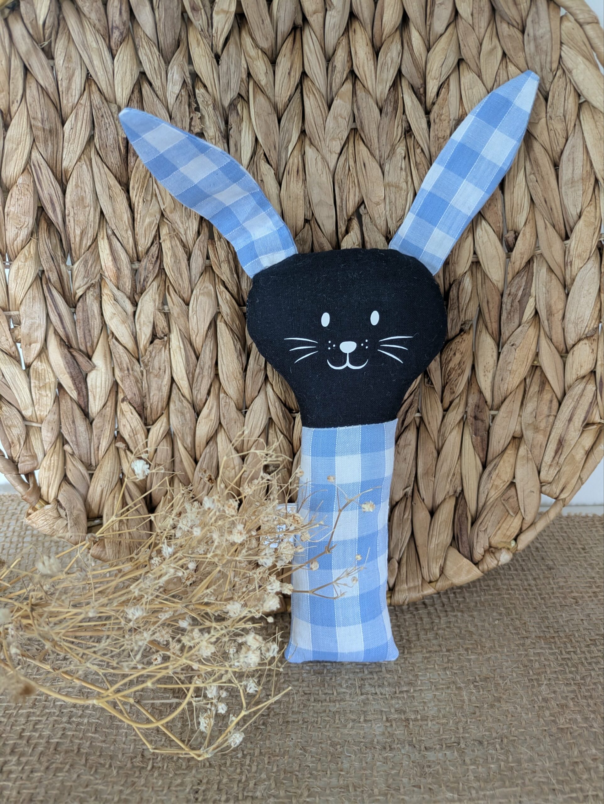 Hochet lapin vichy bleu