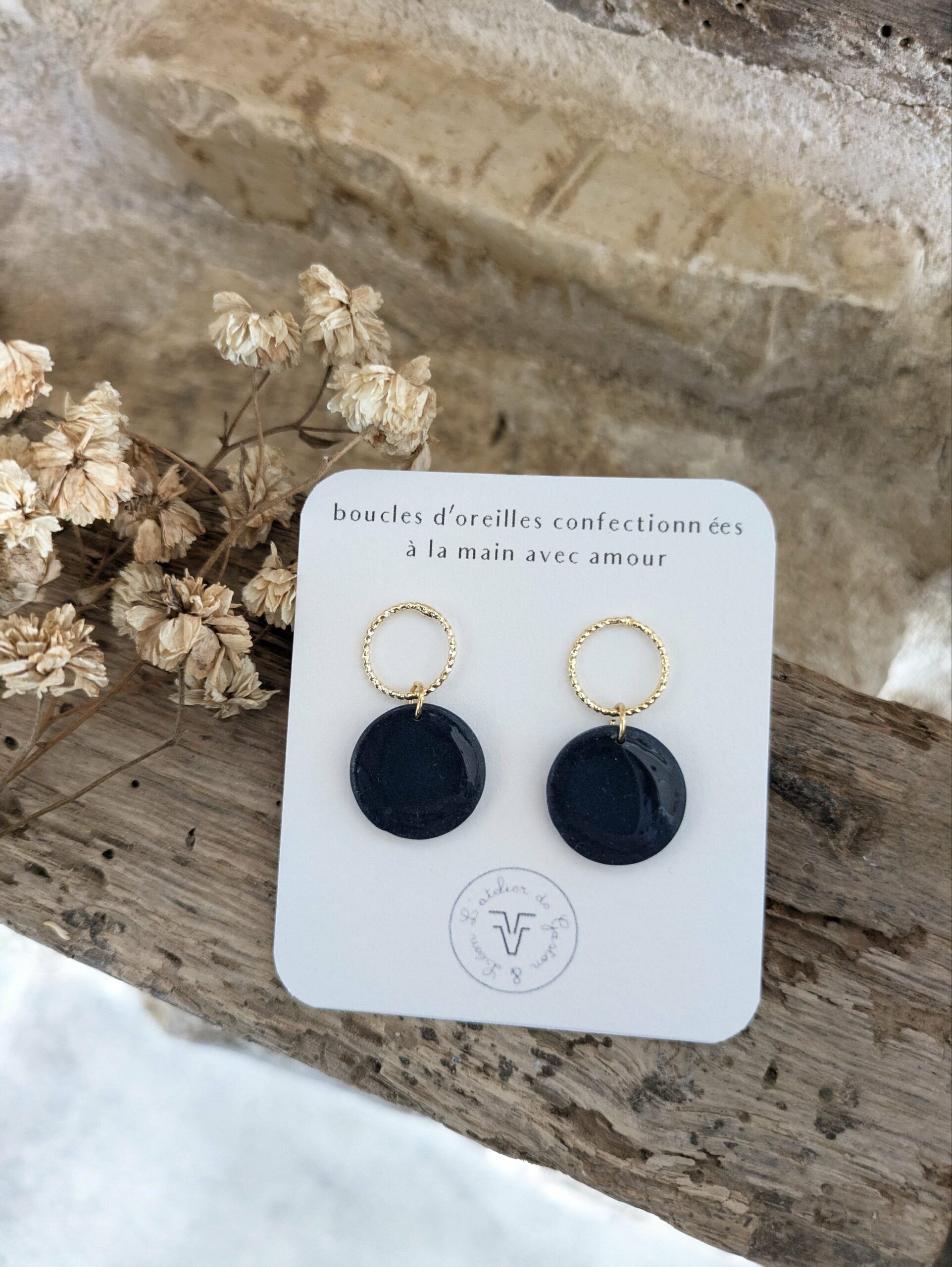 Les perles sont fabriquées par Clémentine avec le plus grand soin, polies et vernies avant assemblage du bijou : chaque pièce est unique ou fabriquée en série limitée.
